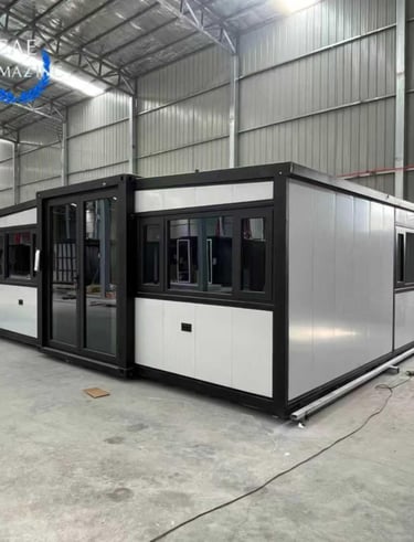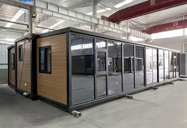 Expandable container houses designed for comfort and all-season Canadian climates.